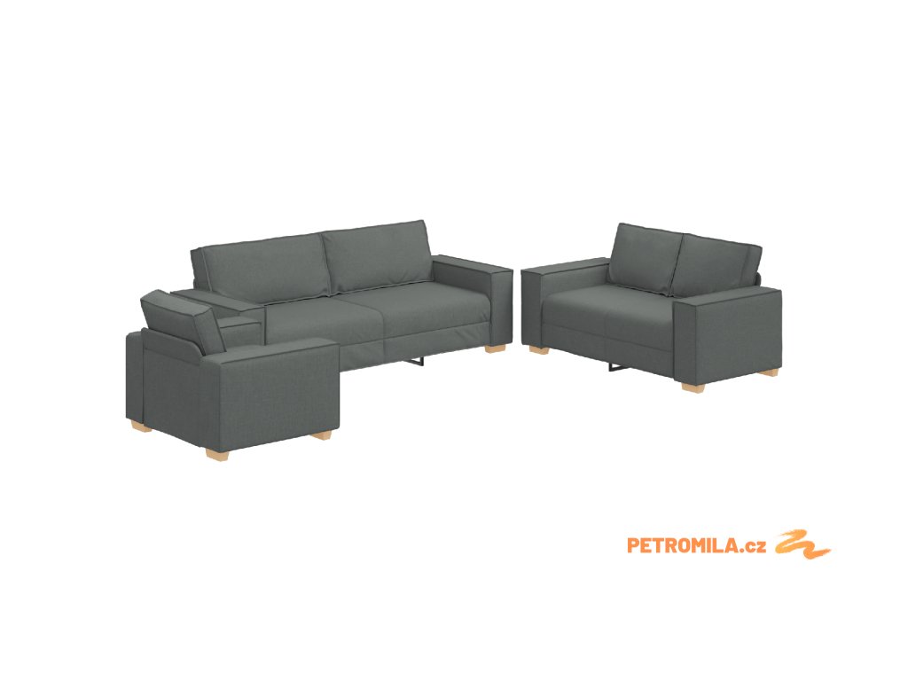 Moderní čalouněná souprava s polštáři přináší do tvého obýváku teplou a přívětivou atmosféru. Díky čistým liniím a minimalistickému designu spojuje styl s praktičností. Obsahuje velkou třímístnou pohovku, pohodlnou dvoumístnou pohovku a jedno křeslo, které se skvěle hodí jak do moderního, tak do tradičního interiéru a vytváří přátelskou atmosféru pro tebe i tvé hosty.