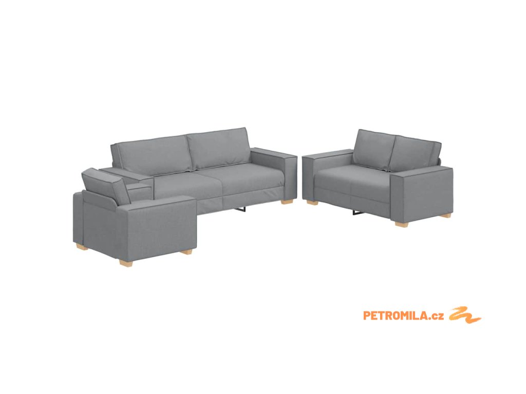 Moderní čalouněná souprava s polštáři přináší do tvého obýváku teplou a přívětivou atmosféru. Díky čistým liniím a minimalistickému designu spojuje styl s praktičností. Obsahuje velkou třímístnou pohovku, pohodlnou dvoumístnou pohovku a jedno křeslo, které se skvěle hodí jak do moderního, tak do tradičního interiéru a vytváří přátelskou atmosféru pro tebe i tvé hosty.