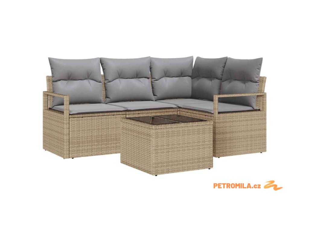 Zahradní jídelní souprava s polštářem 7 pcs Béžová Poly ratan