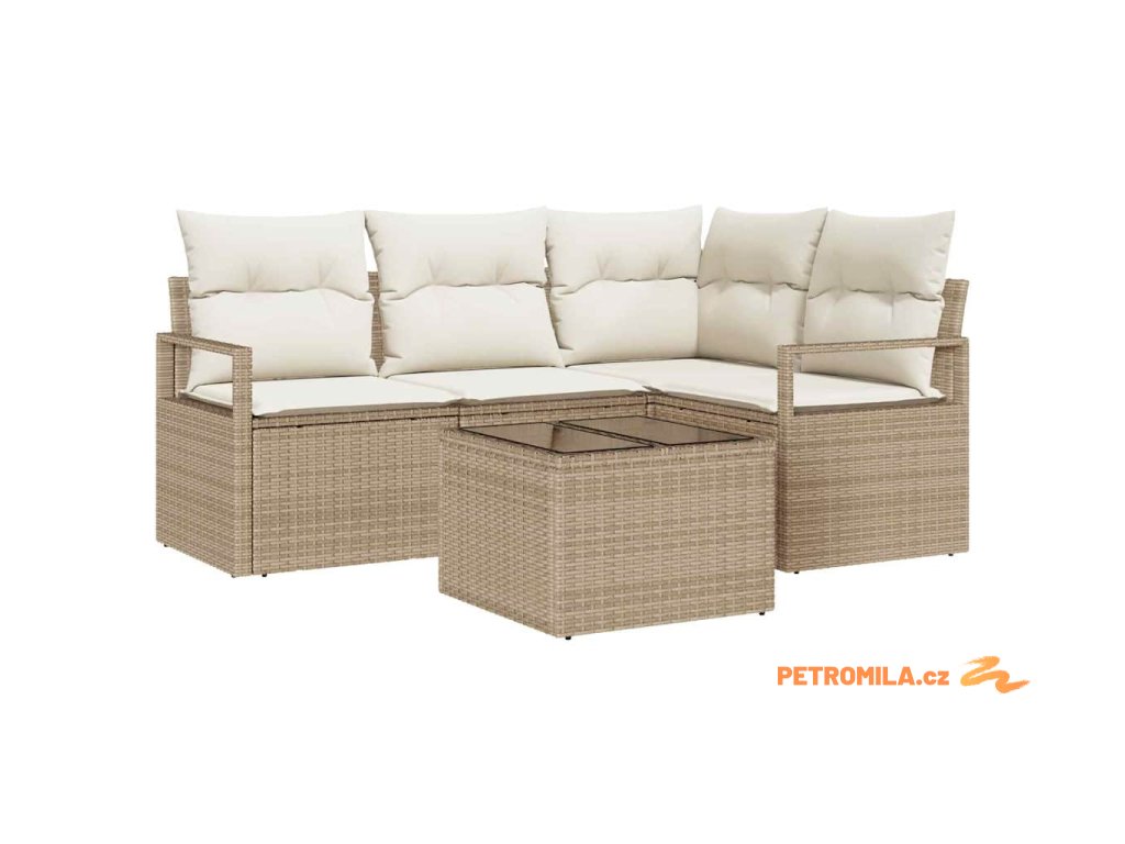 Zahradní jídelní souprava s polštářem 7 pcs Béžová Poly ratan
