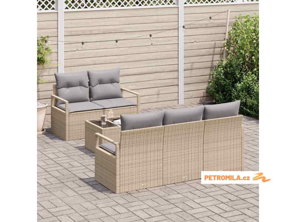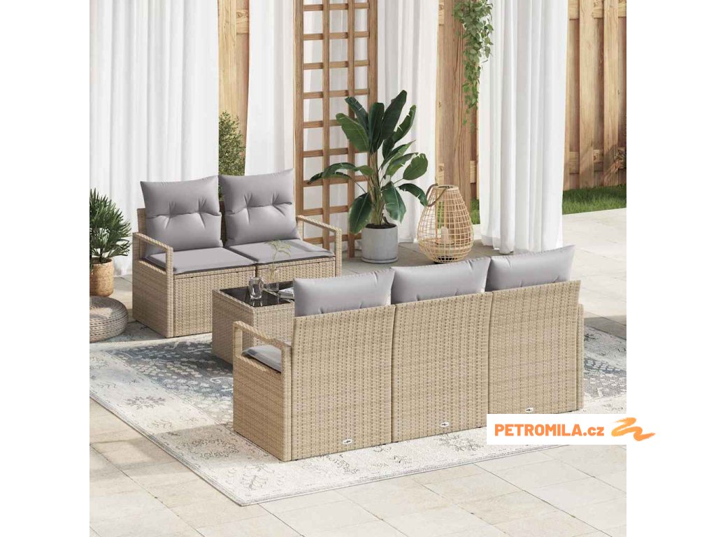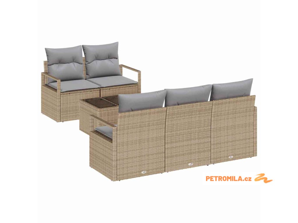 Set pohovek 6 pcs Beige a šedá polyratan
