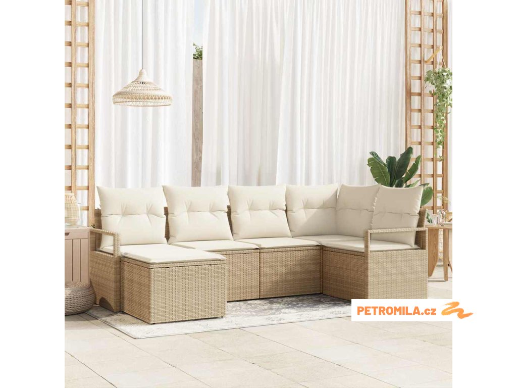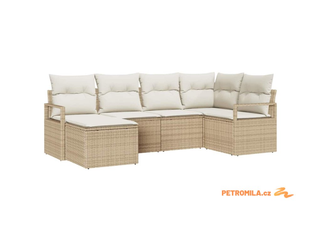 Sada zahradních pohovek s polštářem 6 pcs Béžová Poly Ratan