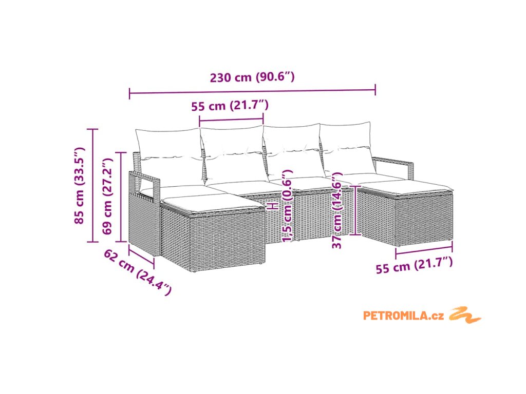 - 2 x Podnožka: 55x55x37 cm (D x Š x V)