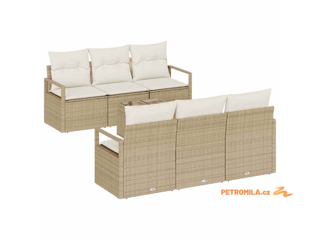Set pohovek 7 pcs Béžová a krémová polyratan