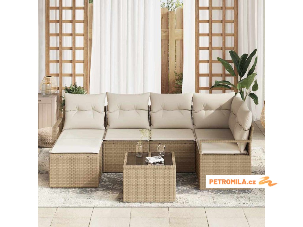 Set pohovek 7 pcs Béžová polyratan