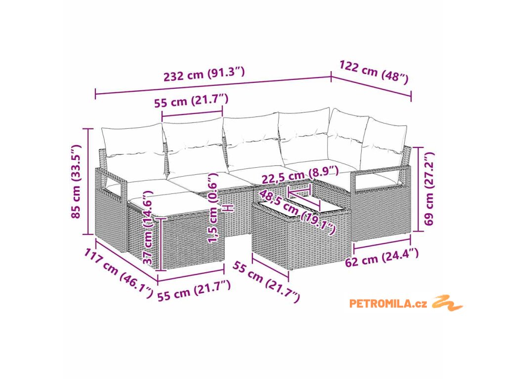- Tipy na údržbu: Aby si souprava uchovala svůj kvalitní vzhled a dlouhou životnost, je dobré používat ochranný obal, když není v používání. To ji ochrání před poškozením povětrnostními vlivy a udrží její texturu a barvy. Potahy polštářů lze snadno prát v jemném detergentem, takže zůstanou svěží a pohodlné.