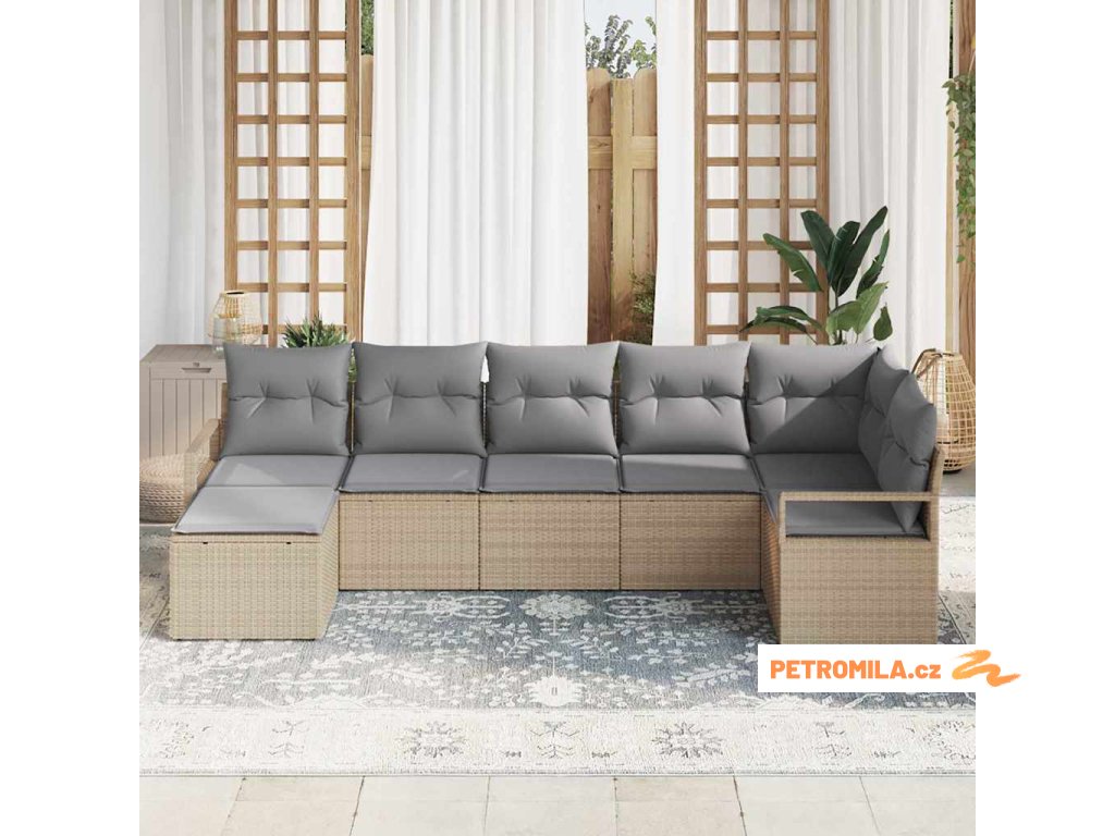 Sada zahradních pohovek s polštářem 8 pcs Béžová Poly ratan