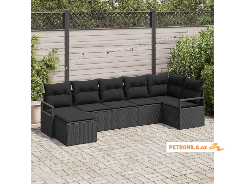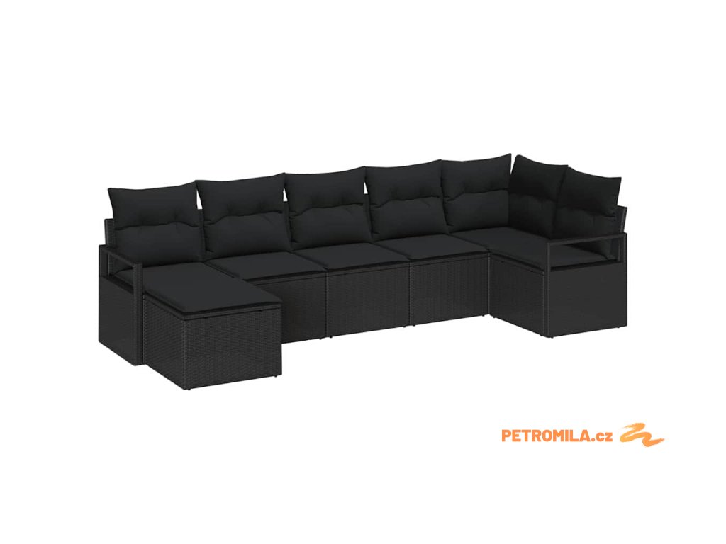Sada zahradních pohovek s polštářem 6 pcs Černá Poly Ratan