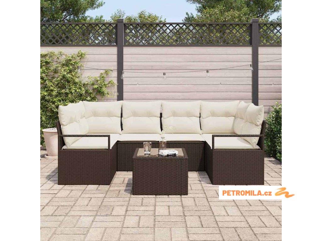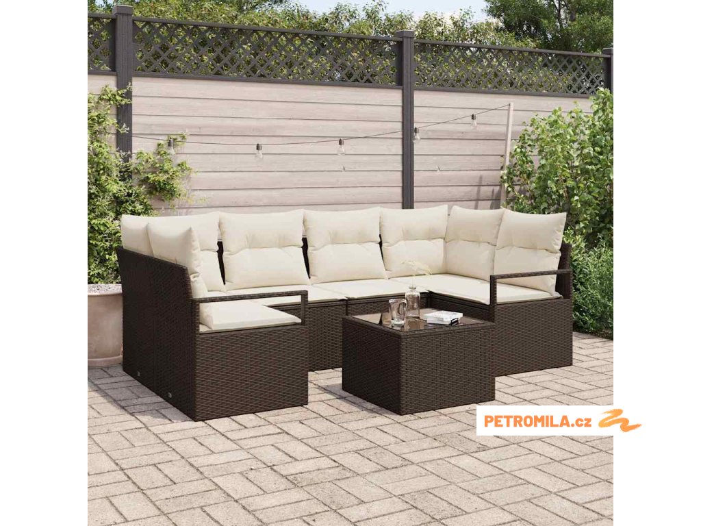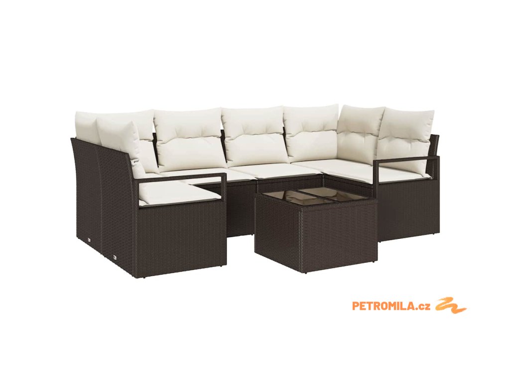 Set pohovek 7 pcs Hnědá a krémová polyratan