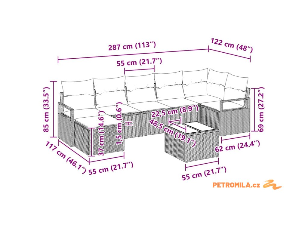 Sada zahradních pohovek s polštářem 8 pcs Béžová Poly ratan