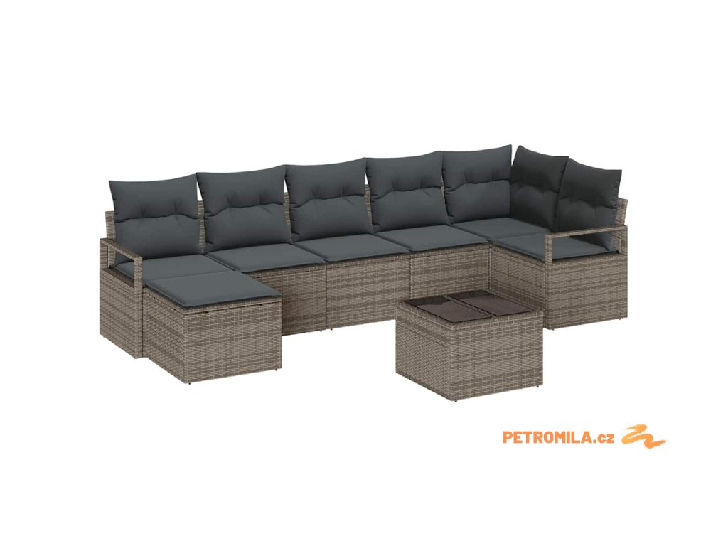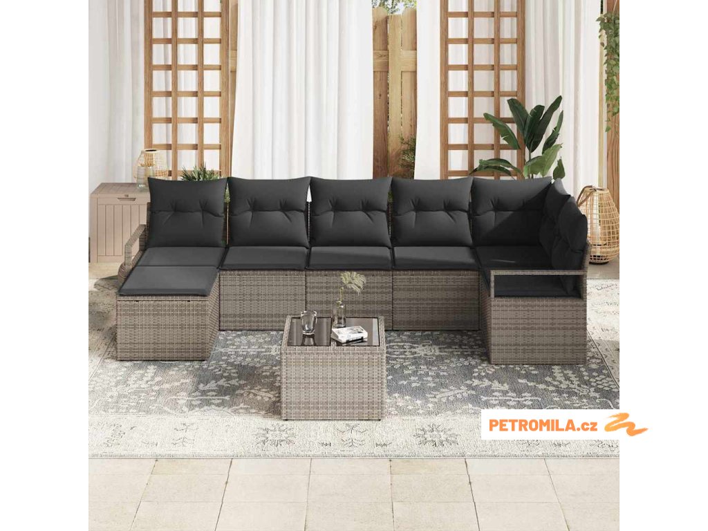 Sada zahradních pohovek s polštářem 8 pcs Šedá Poly ratan