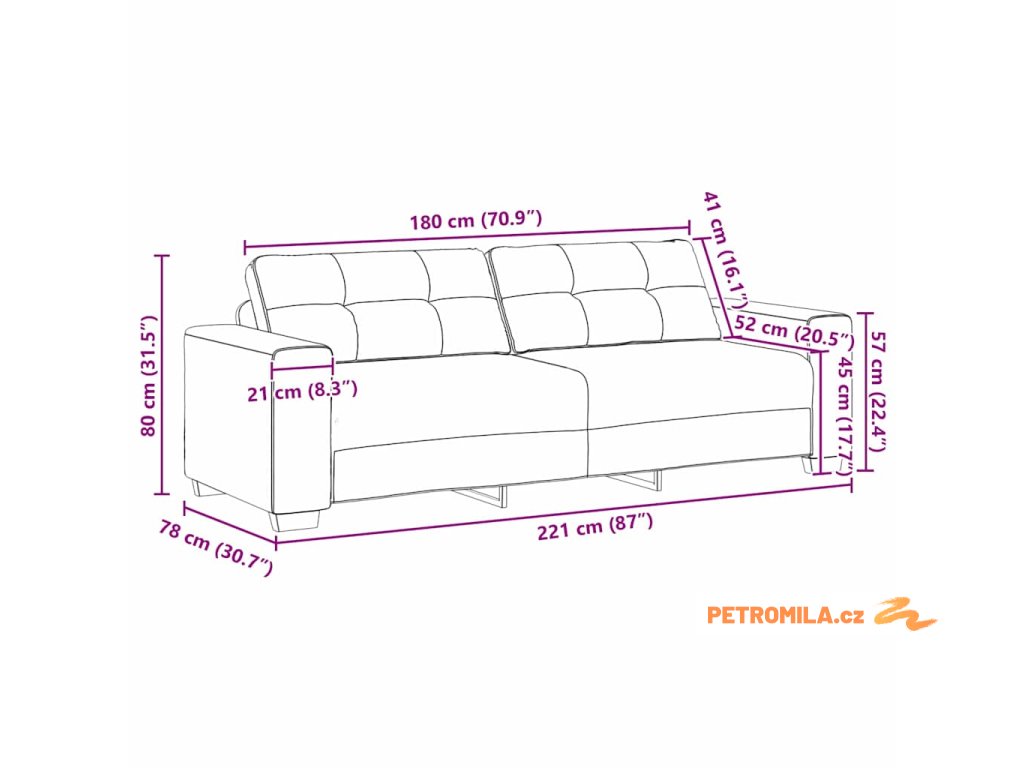 - Vlastnosti a design: Moderní vzhled pohovky zaujme, pokud máš rád čisté linie a decentní eleganci. Matný povrch dodává nádech sofistikovanosti, aniž by přetížil prostor. Odolná polyesterová látka a čtvercové nohy zajišťují, že to vypadá skvěle a dlouho vydrží, perfektně se hodí jak do moderních, tak tradičních interiérů.