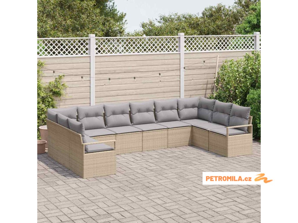Set pohovek s polštářem 10 pcs Béžová a Světle šedá polyratan