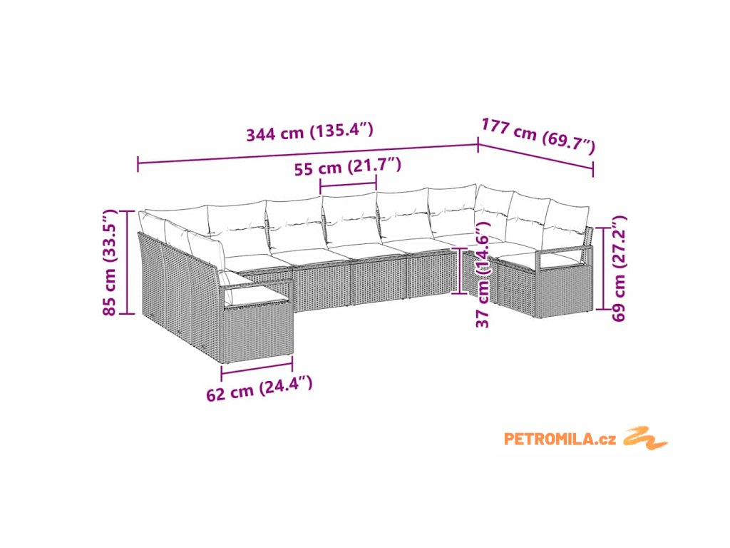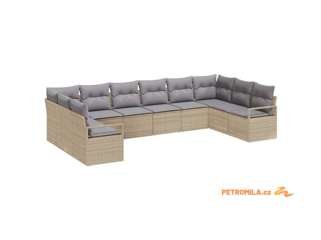 Set pohovek s polštářem 10 pcs Béžová polyratan
