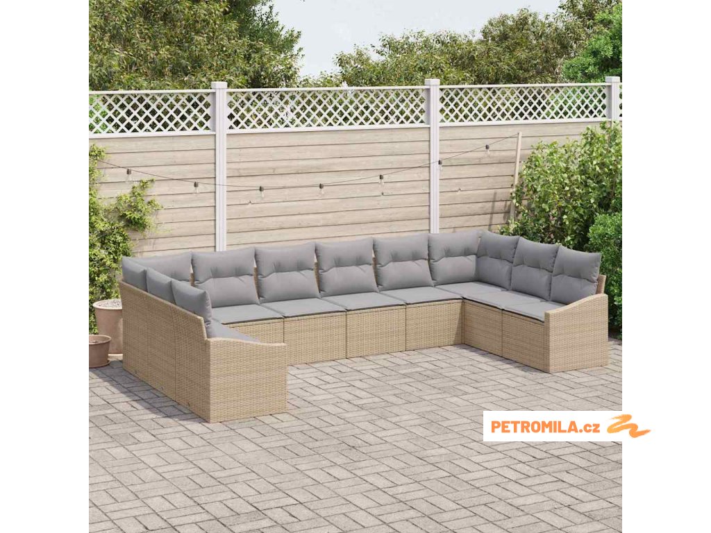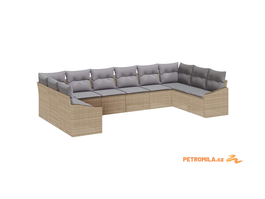 Set pohovek s polštářem 10 pcs Béžová polyratan