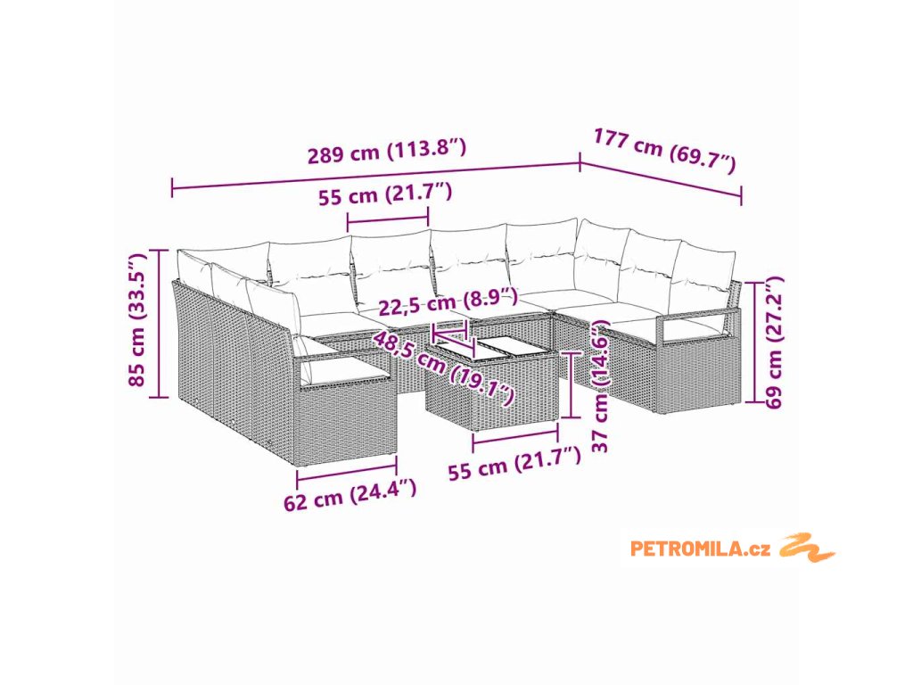 10dílná zahradní sedací souprava + tmavě šedé podušky bambus