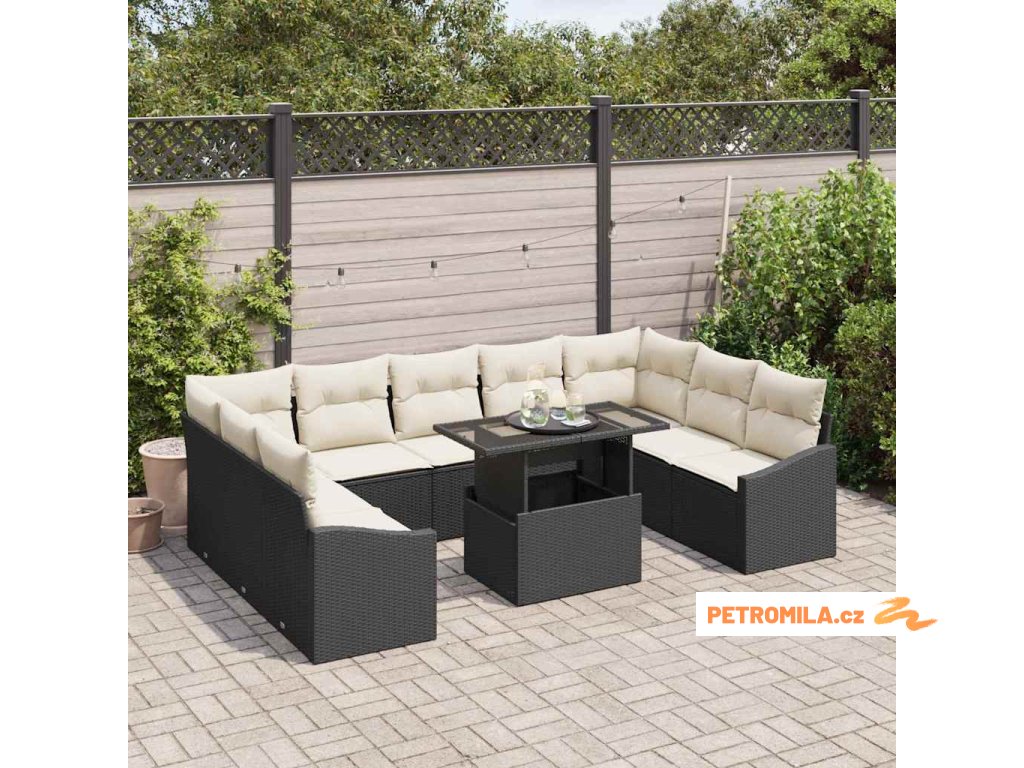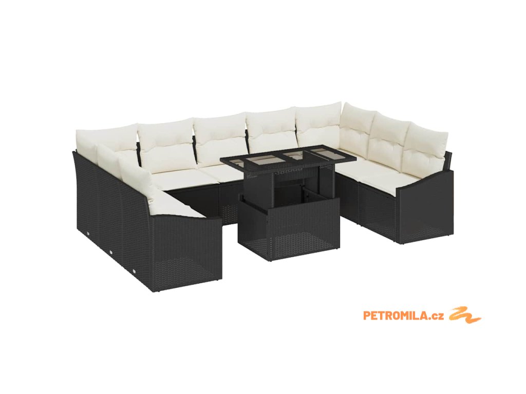 Set pohovek s polštářem 10 pcs Černá a krémová polyratan