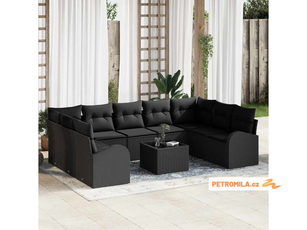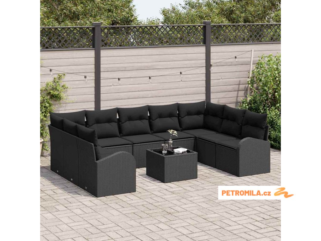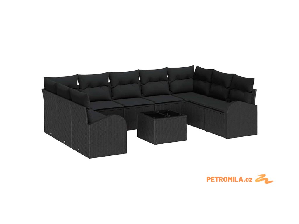 Set pohovek s polštářem 10 pcs Černá Poly Ratan