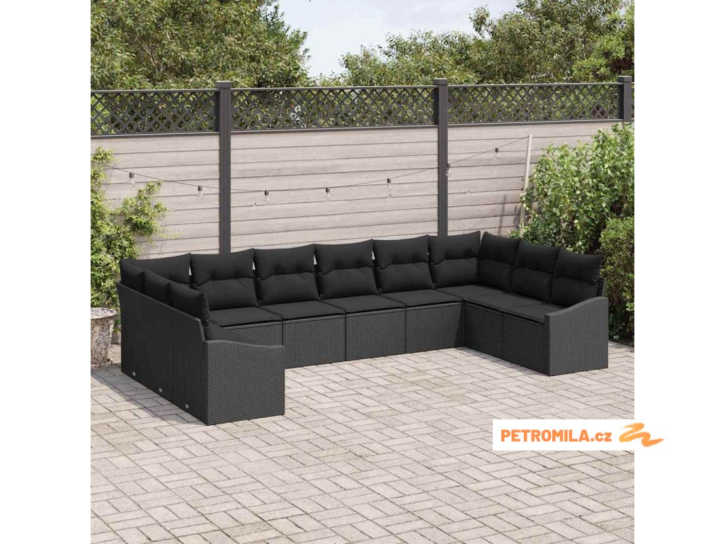 Set pohovek s polštářem 10 pcs Černá polyratan