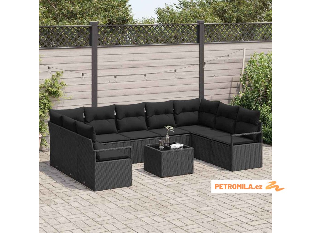 Set pohovek s polštářem 10 pcs Černá polyratan