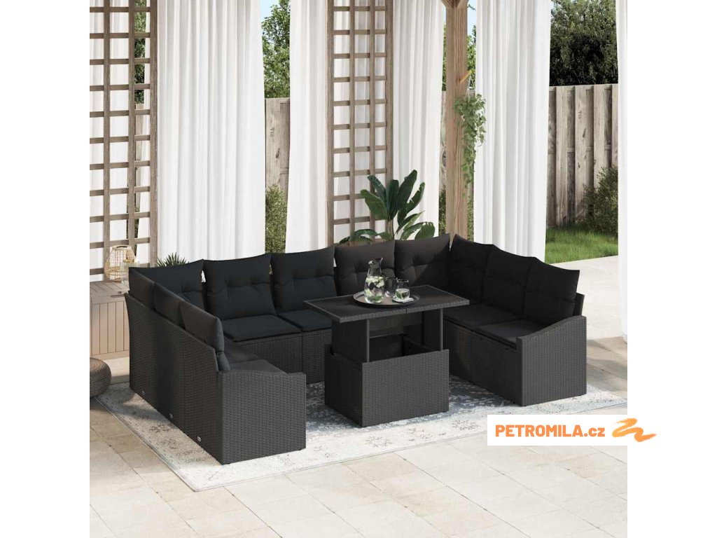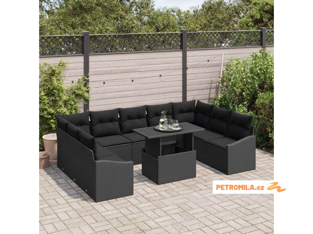 Set pohovek s polštářem 10 pcs Černá polyratan