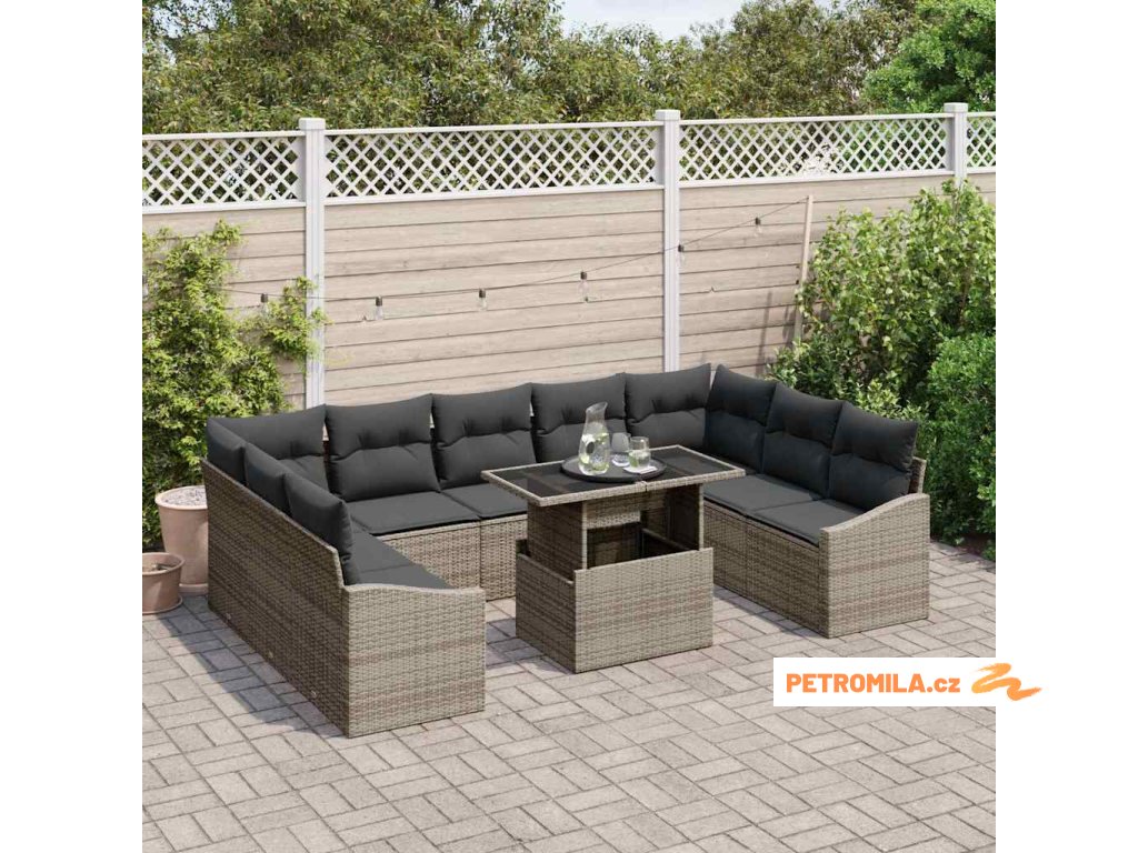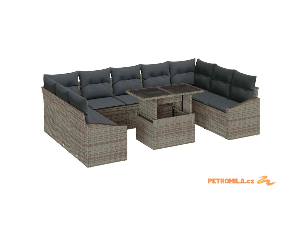 Set pohovek s polštářem 10 pcs Šedá polyratan