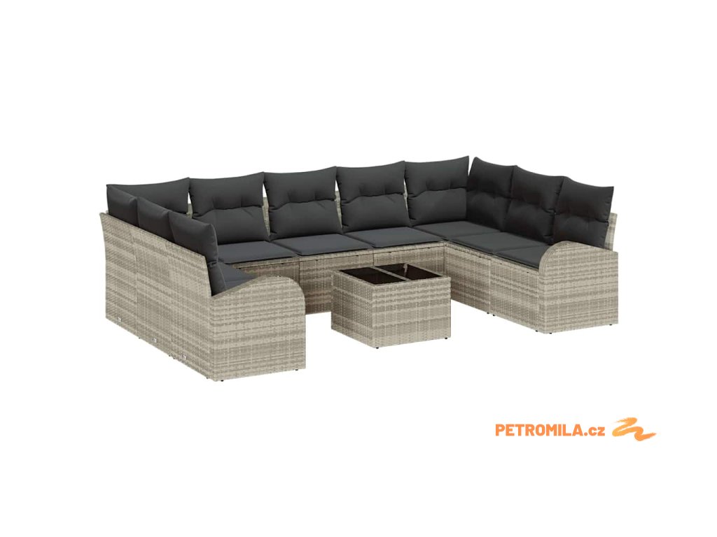Set pohovek s polštářem 10 pcs Světle šedá Poly Ratan