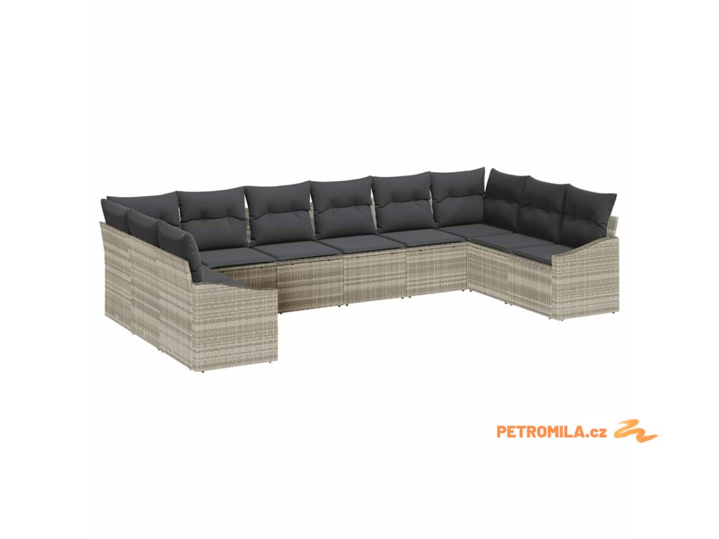Set pohovek s polštářem 10 pcs Světle šedá polyratan