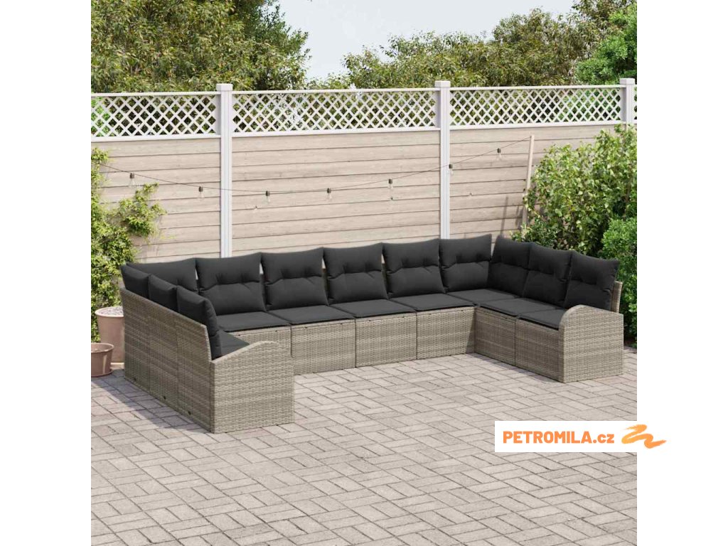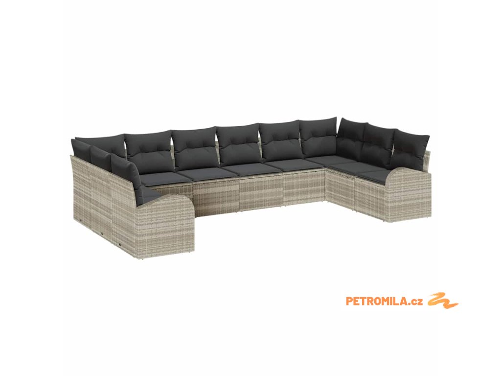 Set pohovek s polštářem 10 pcs Světle šedá polyratan
