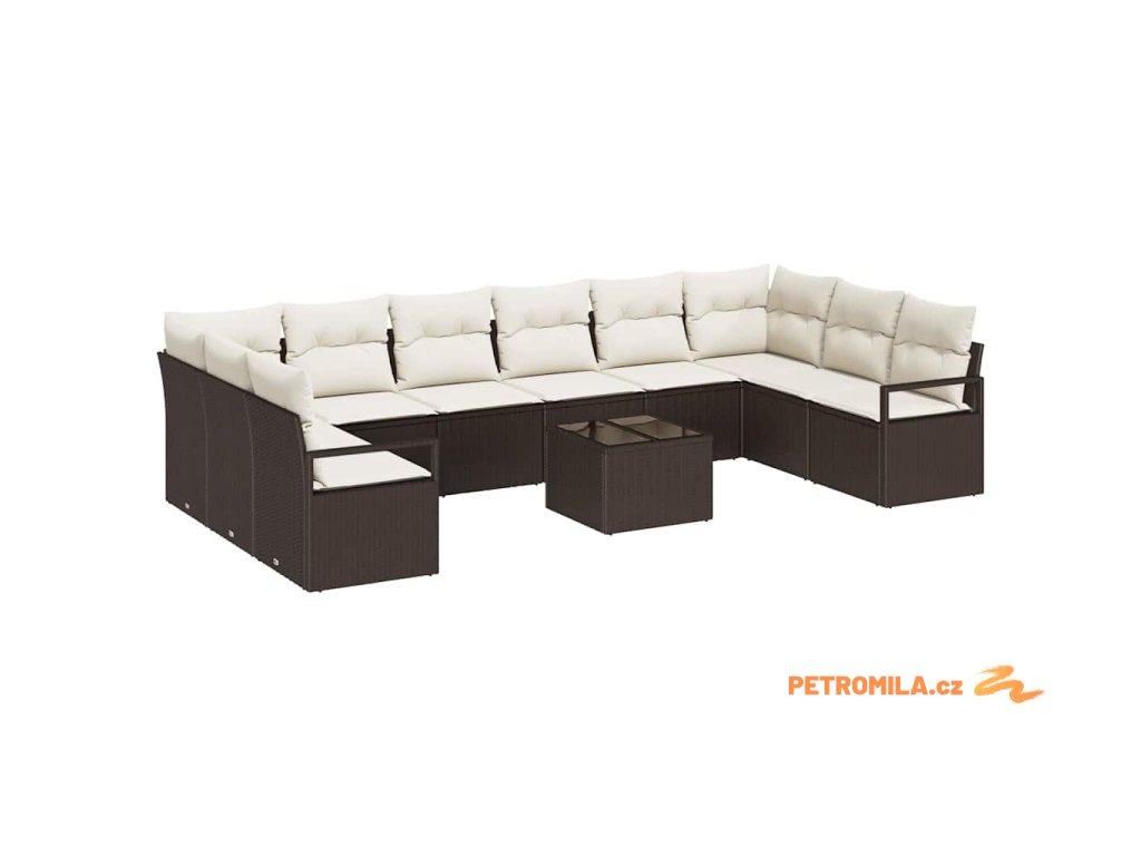 Set pohovek s polštářem 11 pcs Hnědá a krémová polyratan