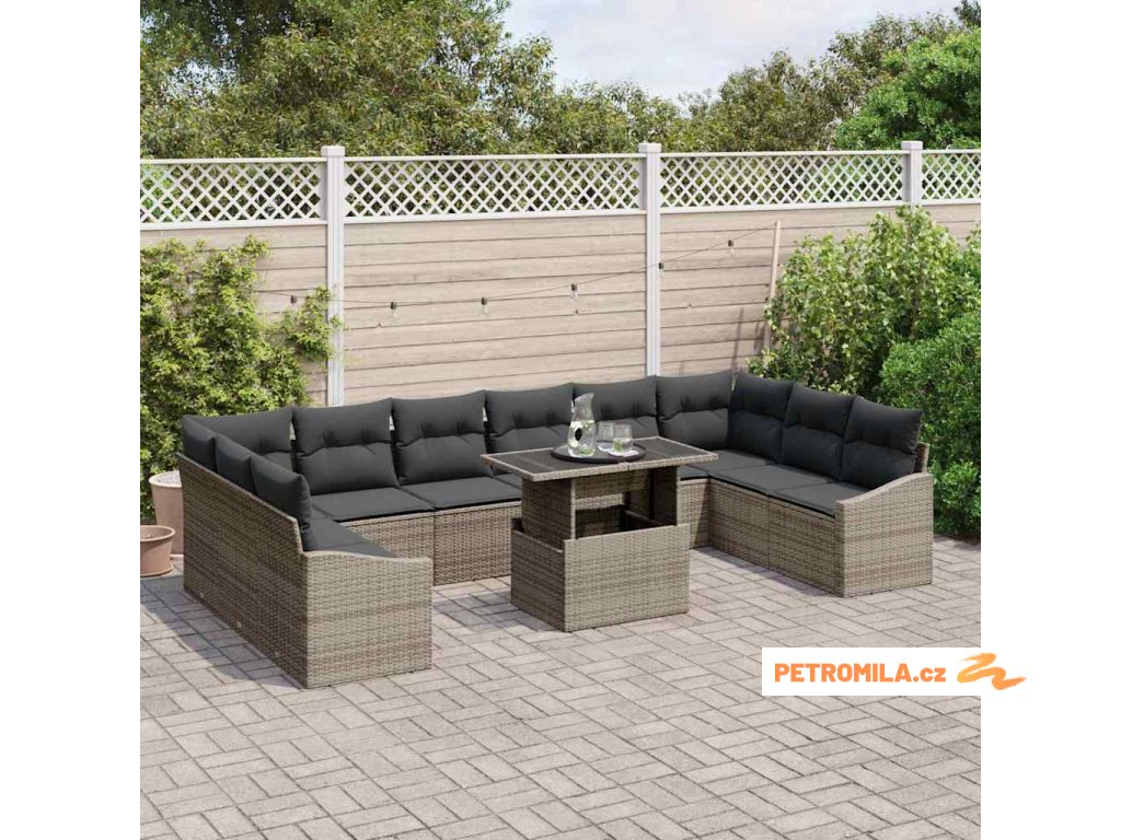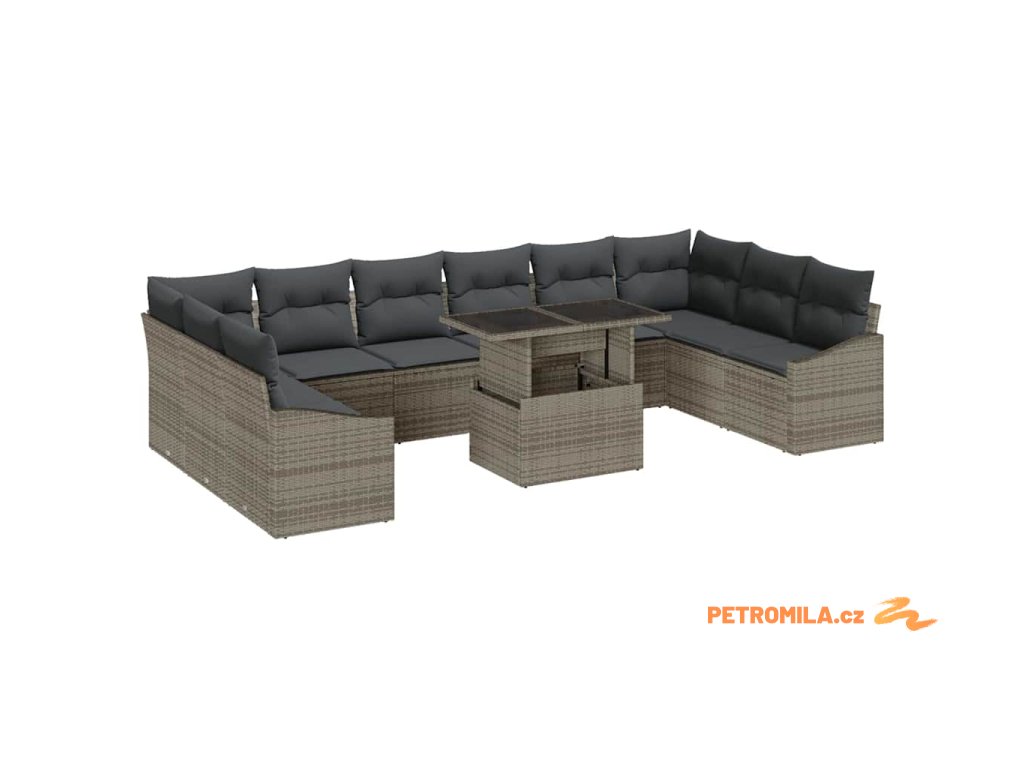 Set pohovek s polštářem 11 pcs Šedá polyratan