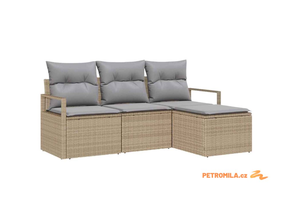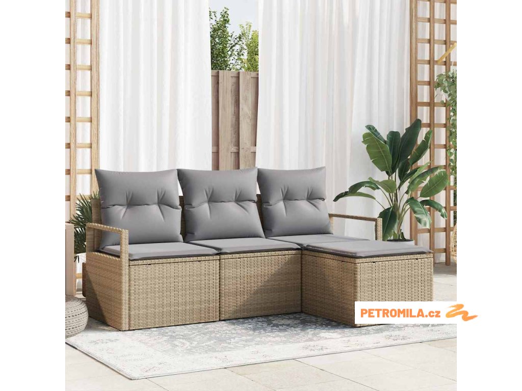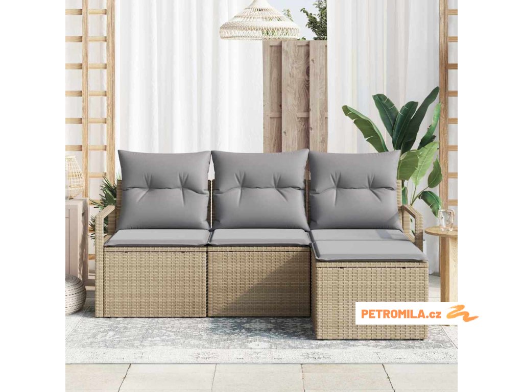 Set pohovek s polštářem 4 pcs Béžová a Světle šedá polyratan