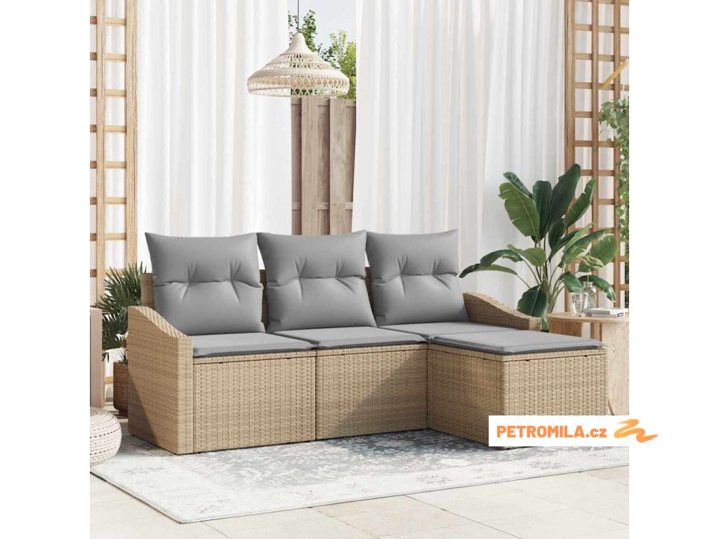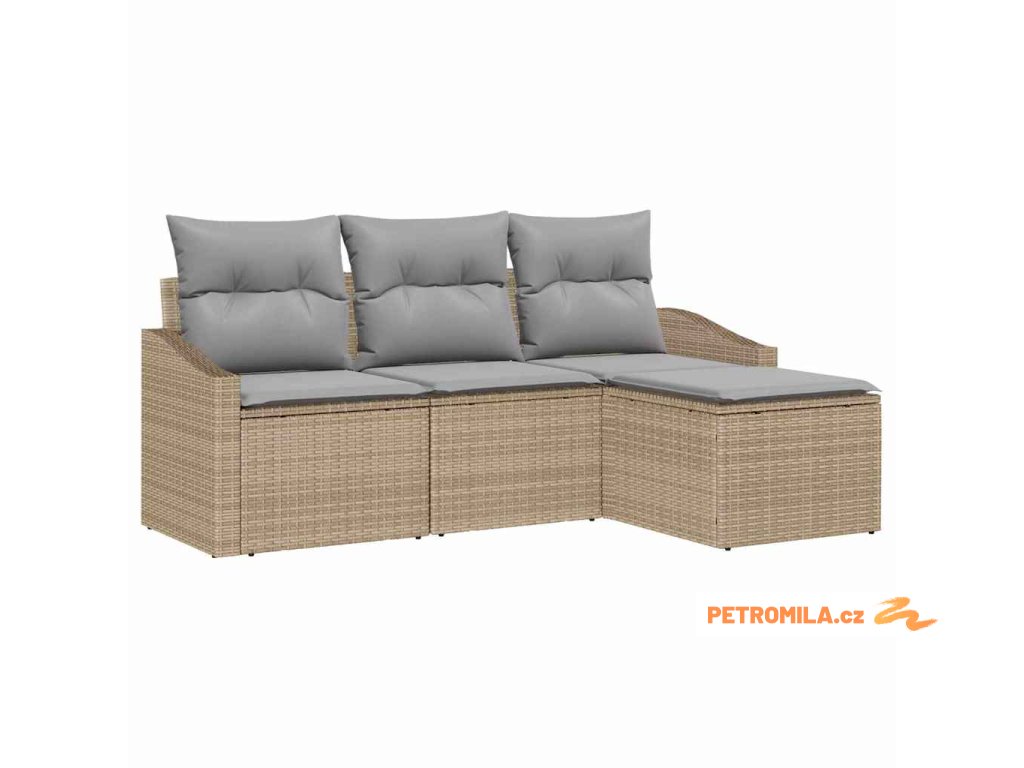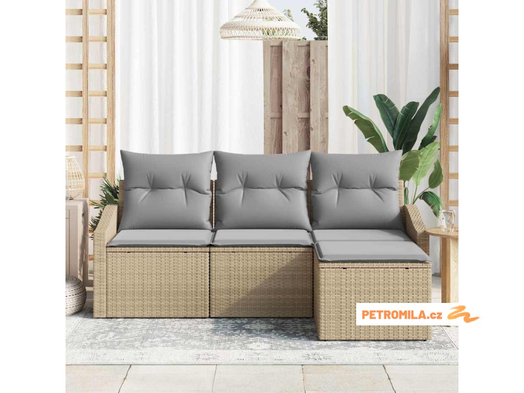 Set pohovek s polštářem 4 pcs Béžová polyratan