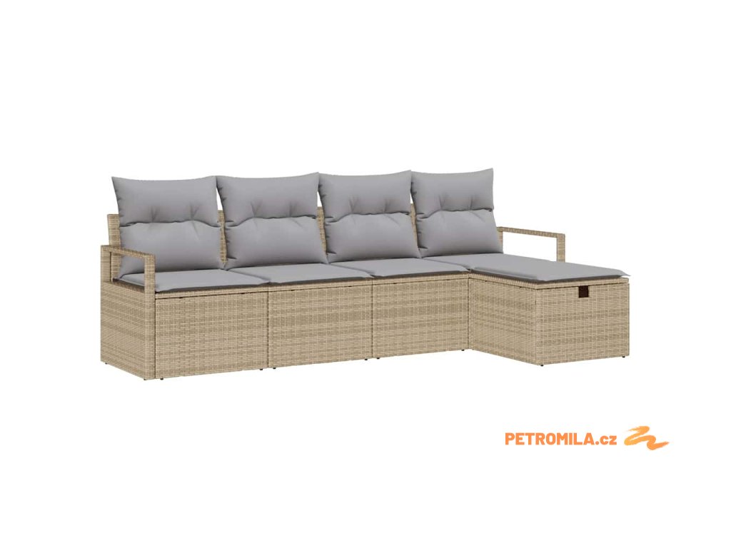 Set pohovek s polštářem 5 pcs Béžová a Světle šedá polyratan