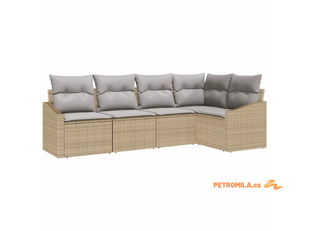 Set pohovek s polštářem 5 pcs Béžová a Světle šedá polyratan