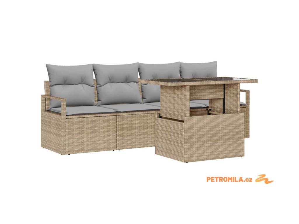 Set pohovek s polštářem 5 pcs Béžová polyratan