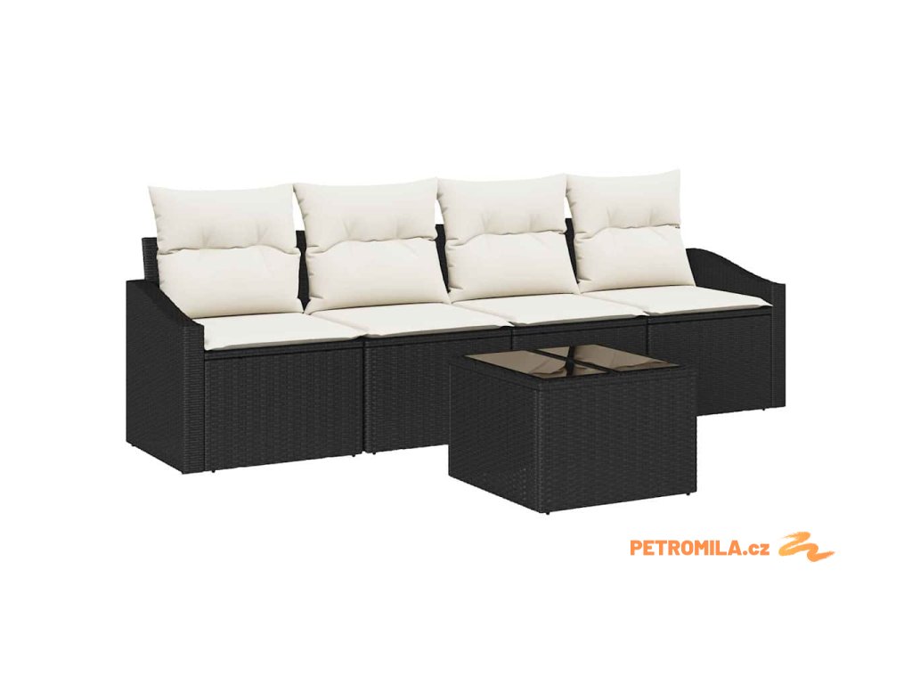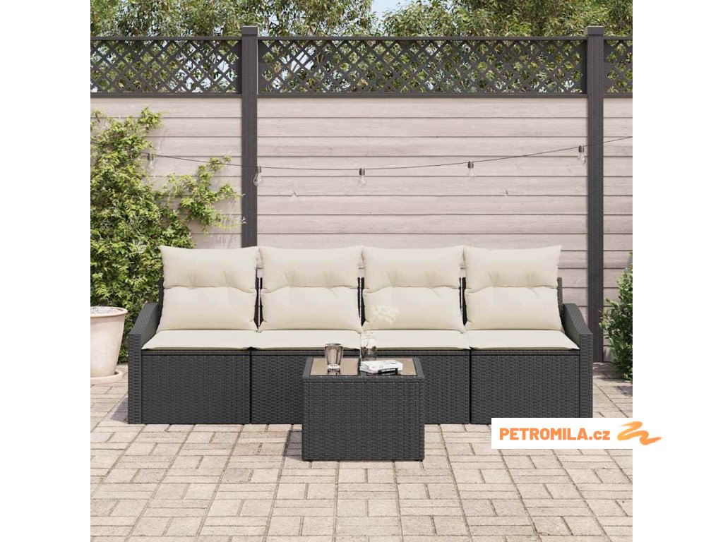 Set pohovek s polštářem 5 pcs Černá a krémová polyratan
