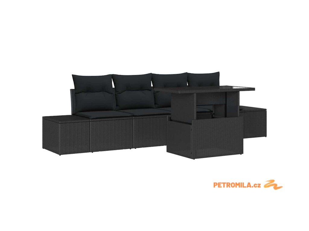 Set pohovek s polštářem 5 pcs Černá polyratan