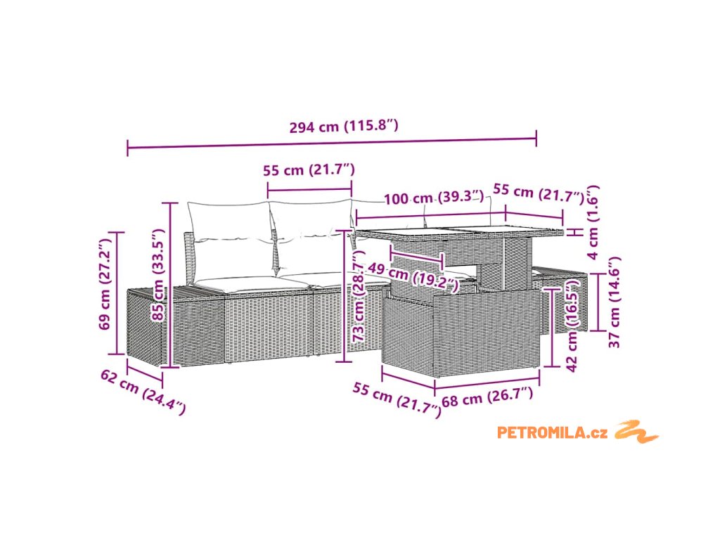 Tento elegantní zahradní set pohovek skvěle kombinuje funkčnost a styl. Je navržen tak, aby zvýšil estetiku vašeho venkovního prostoru. Jeho moderní design a čisté linie přidávají na sofistikovanosti. Určen pro lidi, kteří mají rádi flexibilitu, skvěle se hodí na různé akce – od relaxačních chvílí u kávy až po slavnostní večeře s přáteli.