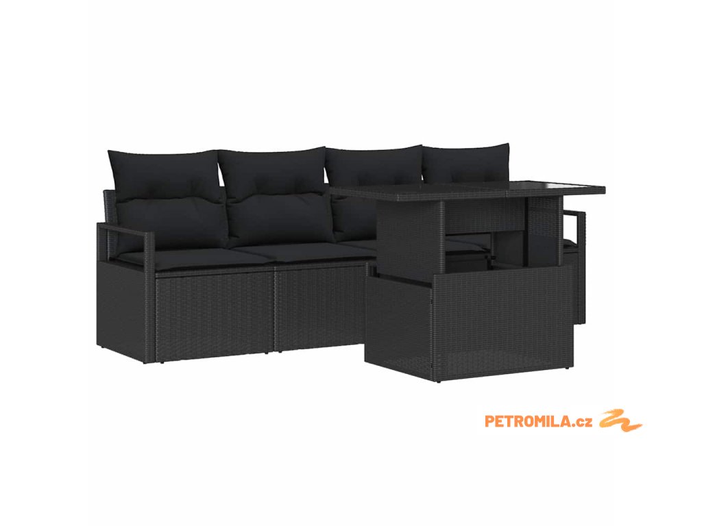 Set pohovek s polštářem 5 pcs Černá polyratan
