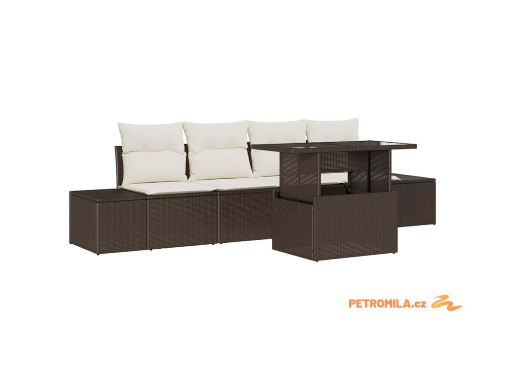 Set pohovek s polštářem 5 pcs Hnědá a krémová polyratan