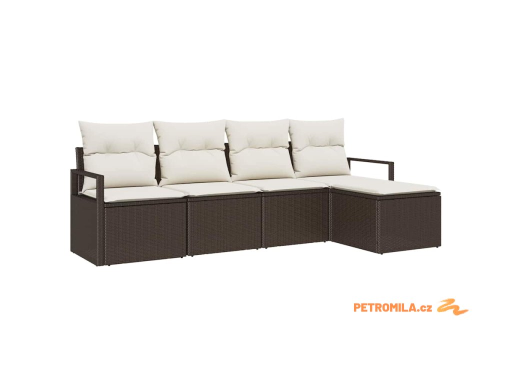 Set pohovek s polštářem 5 pcs Hnědá a krémová polyratan