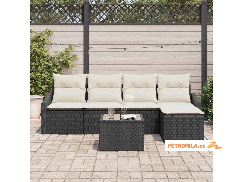 Set pohovek s polštářem 5 pcs Hnědá a krémová polyratan