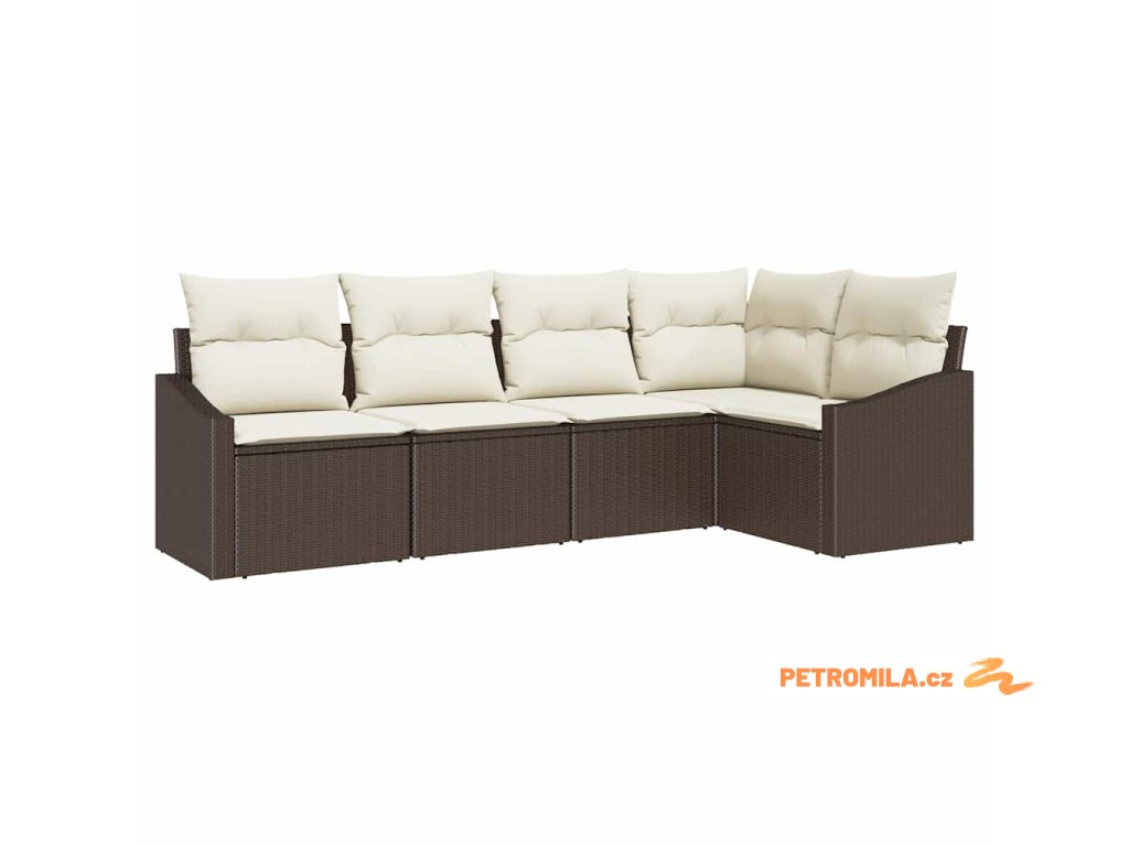 Set pohovek s polštářem 5 pcs Hnědá polyratan