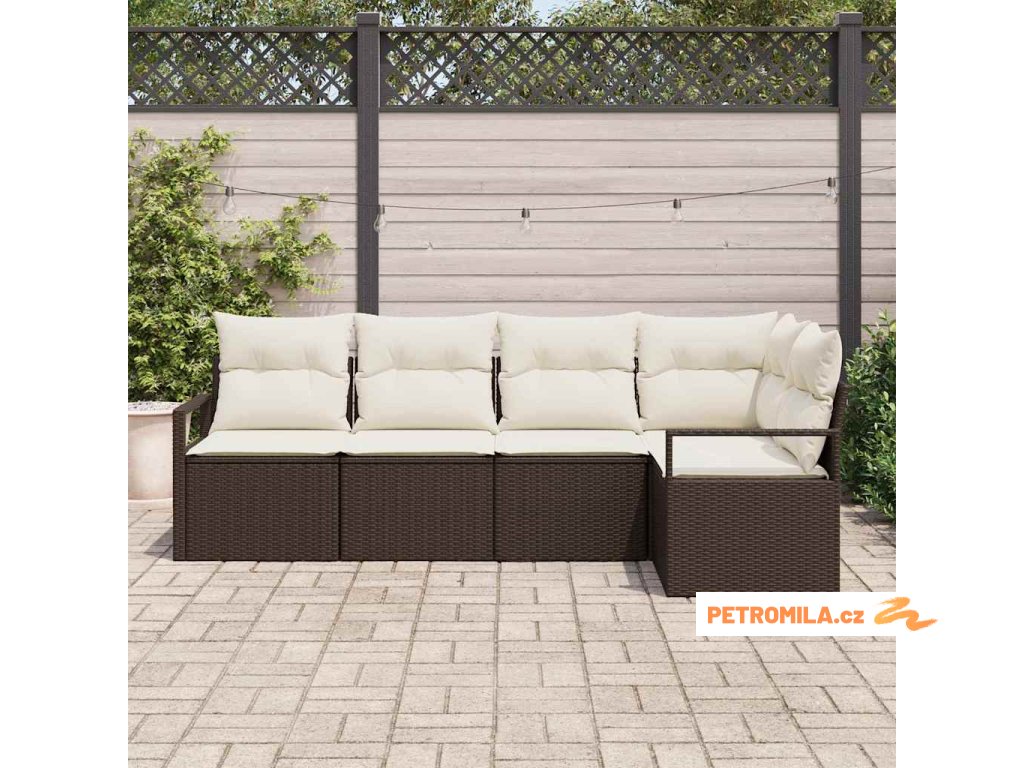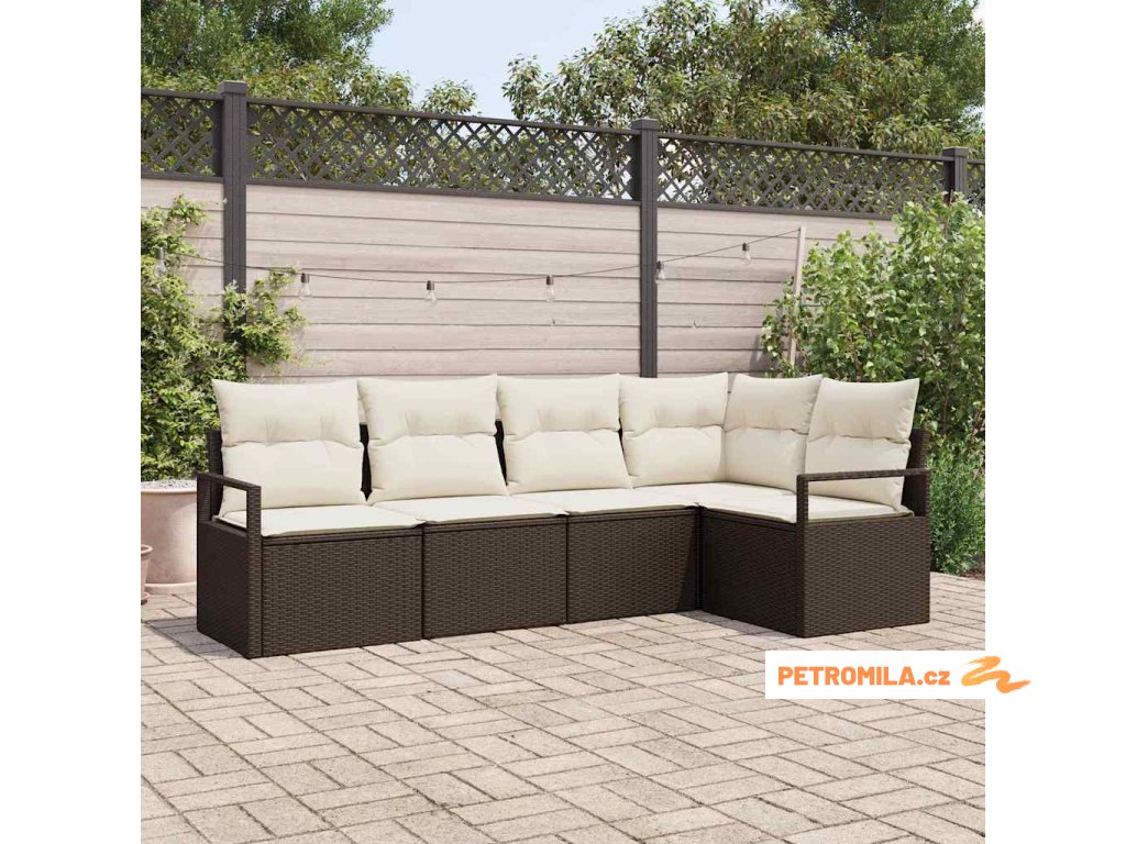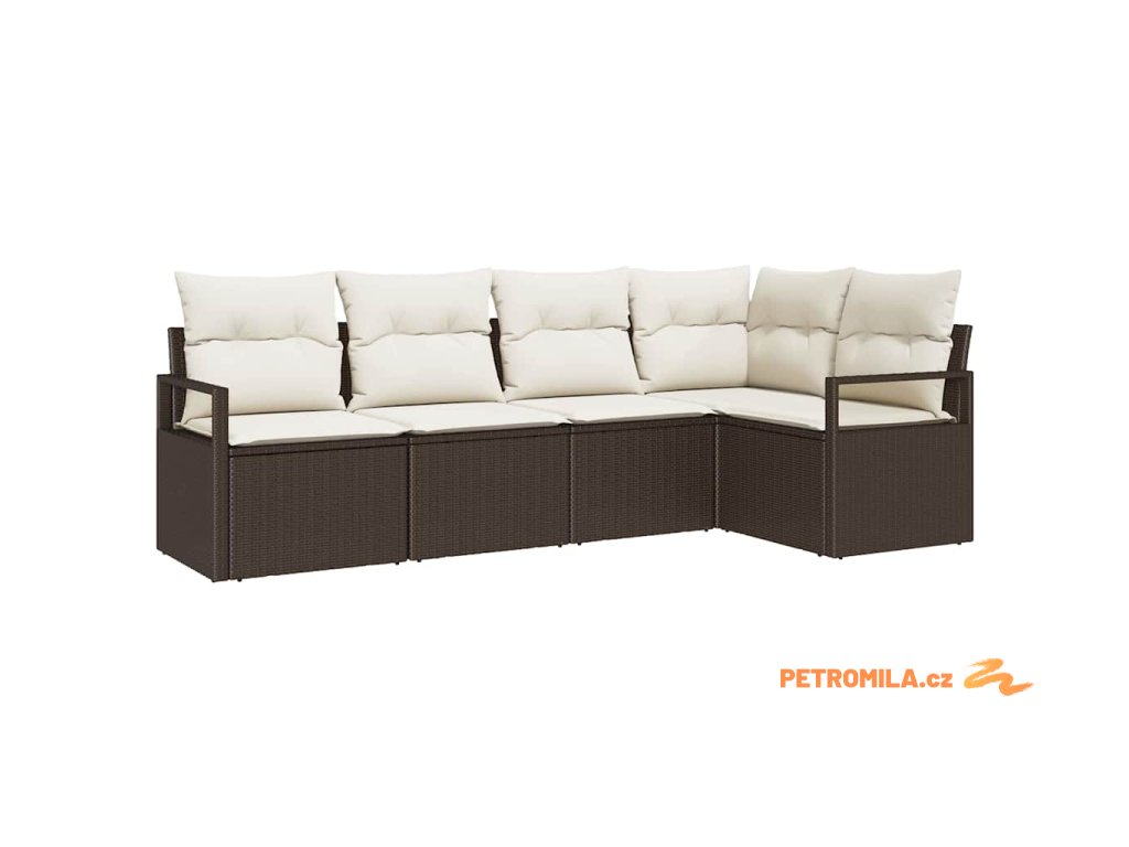 Set pohovek s polštářem 5 pcs Hnědá polyratan