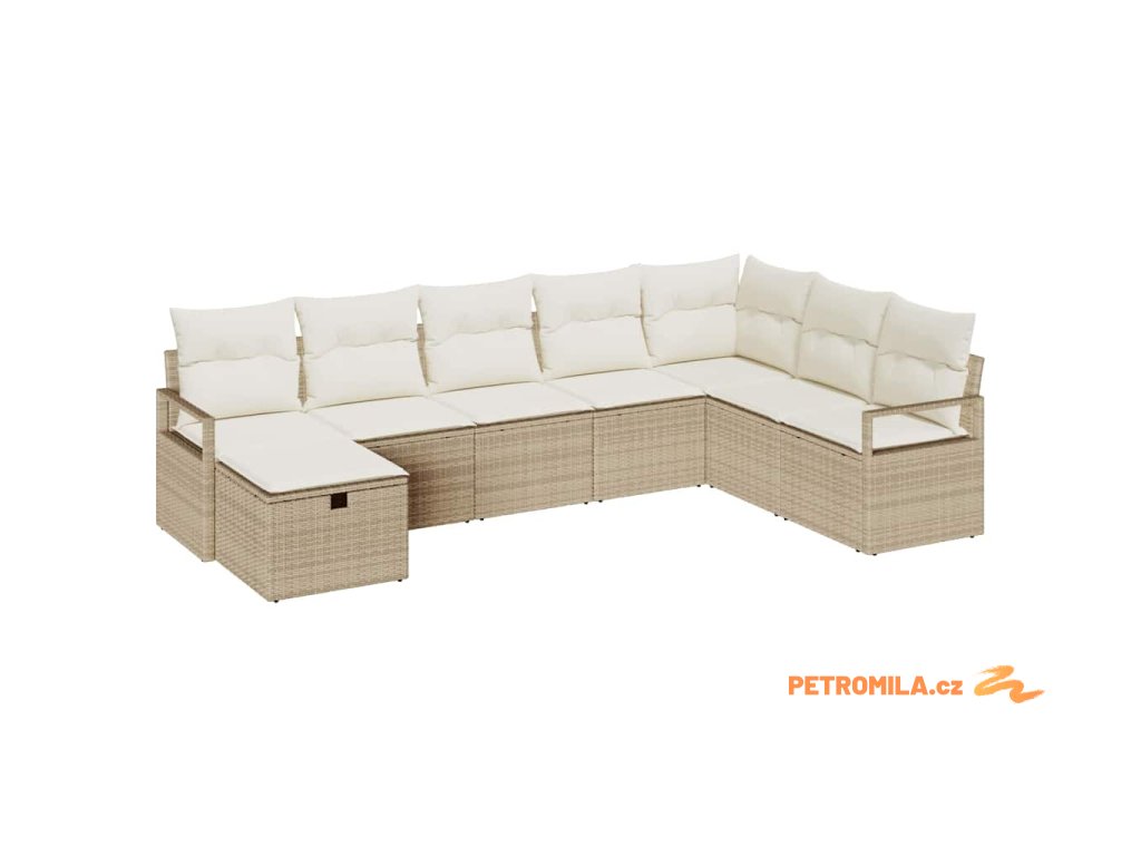 Sada zahradních pohovek s polštářem 8 pcs Béžová Poly ratan