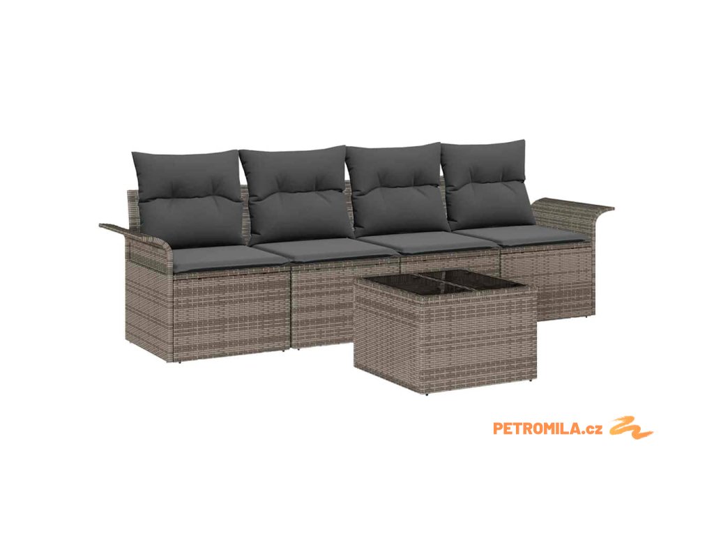 Set pohovek s polštářem 5 pcs Šedá polyratan