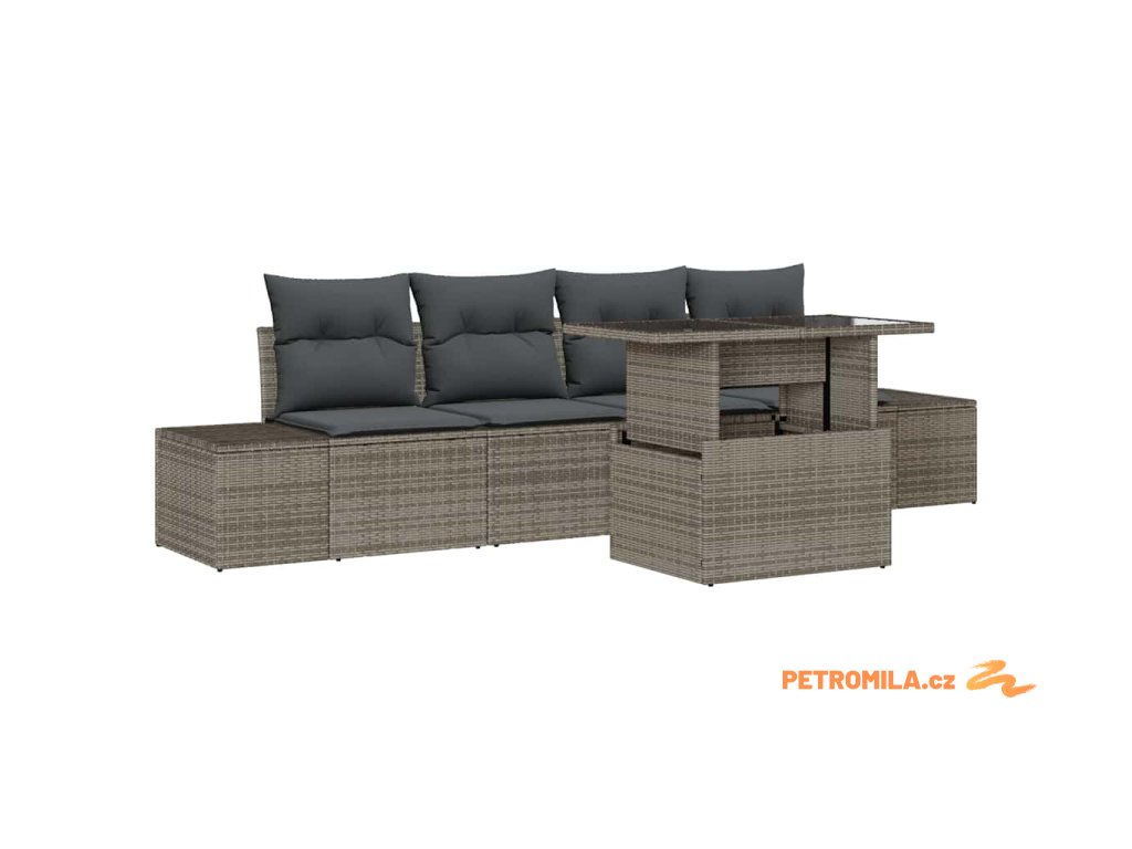 Set pohovek s polštářem 5 pcs Šedá polyratan