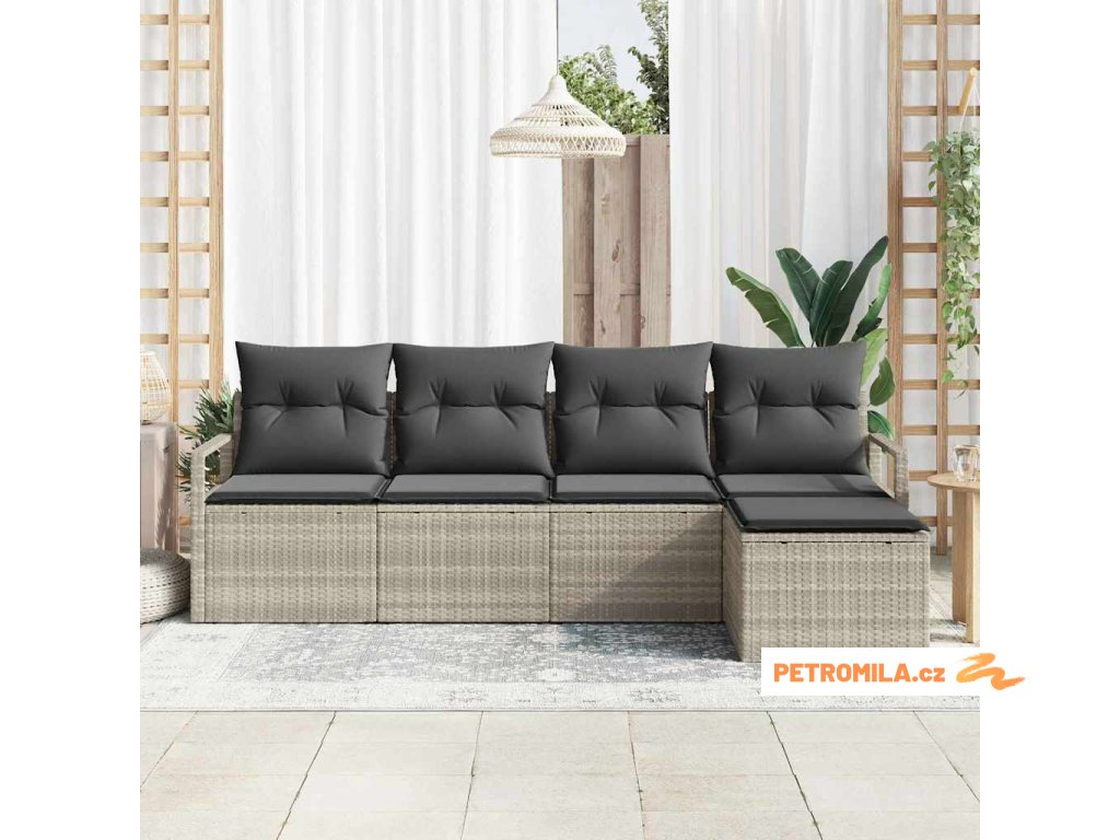 Set pohovek s polštářem 5 pcs Světle šedá polyratan