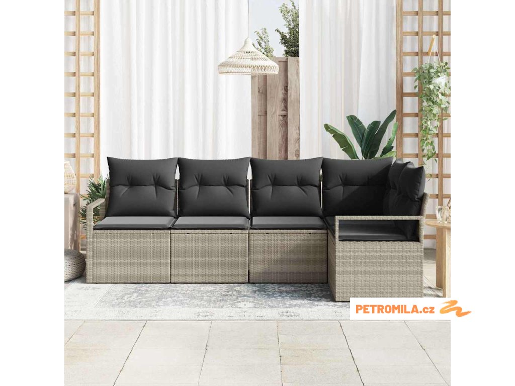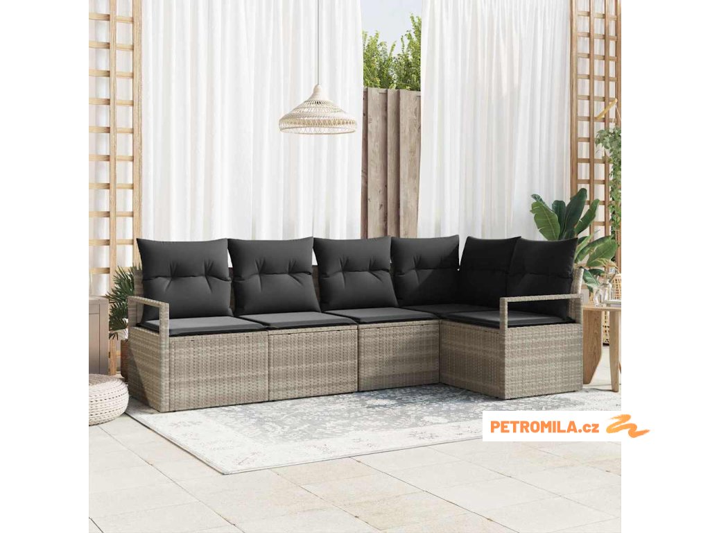 Set pohovek s polštářem 5 pcs Světle šedá polyratan